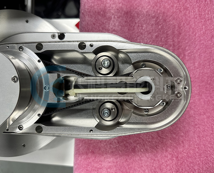 川崎機(jī)器人在2023年的工博會(huì)上給大家體驗(yàn)了影視紅毯拍攝機(jī)器人,還有川崎機(jī)器人聯(lián)動(dòng)川崎摩托車,同時(shí)也展出了晶圓搬運(yùn)機(jī)器人,該晶圓搬運(yùn)機(jī)器人通過(guò)使用錐齒輪并采用沒有齒隙的緊密齒輪設(shè)計(jì),有效減輕齒面的負(fù)擔(dān),在降低使用磨損減少噪音的同時(shí)能夠提高重復(fù)定位的精度。其優(yōu)勢(shì)在于以微米單位的齒面嚙合技術(shù),能輕松實(shí)現(xiàn)碰撞檢測(cè)功能及拖拽示教功能,川崎通過(guò)改變手臂旋轉(zhuǎn)的中心并延長(zhǎng)手臂,可實(shí)現(xiàn)在無(wú)需走行軸的情況下最多可對(duì)應(yīng)4LP的設(shè)備布局。