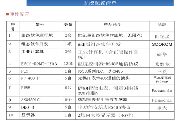 系統(tǒng)說(shuō)明 l1.RS485總線來(lái)采集設(shè)備的各種參數(shù)。通過(guò)PLC與設(shè)備上的溫控表、PH值表、傳感器等以通信、 l2.使用工控組態(tài)軟件來(lái)存儲(chǔ)記錄PLC中采集的各種設(shè)備參數(shù)。 l3.使用KW8M 采集電流、電壓數(shù)據(jù)通過(guò)RS485通信。 l4.世紀(jì)星監(jiān)控系統(tǒng)控制策略的創(chuàng)建是在策略編輯器中實(shí)現(xiàn)的,策略編輯器是一個(gè)基于圖標(biāo),即功能模塊的設(shè)計(jì)環(huán)境.結(jié)合策略工具箱中的功能模塊及其相應(yīng)的參數(shù)配置對(duì)話框開發(fā)策略與配置工作.通過(guò)RS485總線通信采集數(shù)據(jù)連接功能塊。功能模塊也稱為軟儀表,其功能與人們熟悉的模擬儀表相同,能完成現(xiàn)場(chǎng)數(shù)據(jù)的采集、處理、顯示、報(bào)警和控制等(如溫度、電流、電壓、PH值、I/O狀態(tài)).構(gòu)建控制策略時(shí),用連線將策略所需的功能模塊連接起來(lái). l5.采集的記錄報(bào)表數(shù)據(jù)發(fā)送到局域網(wǎng)外遠(yuǎn)端,在遠(yuǎn)端也能進(jìn)行數(shù)據(jù)分析。